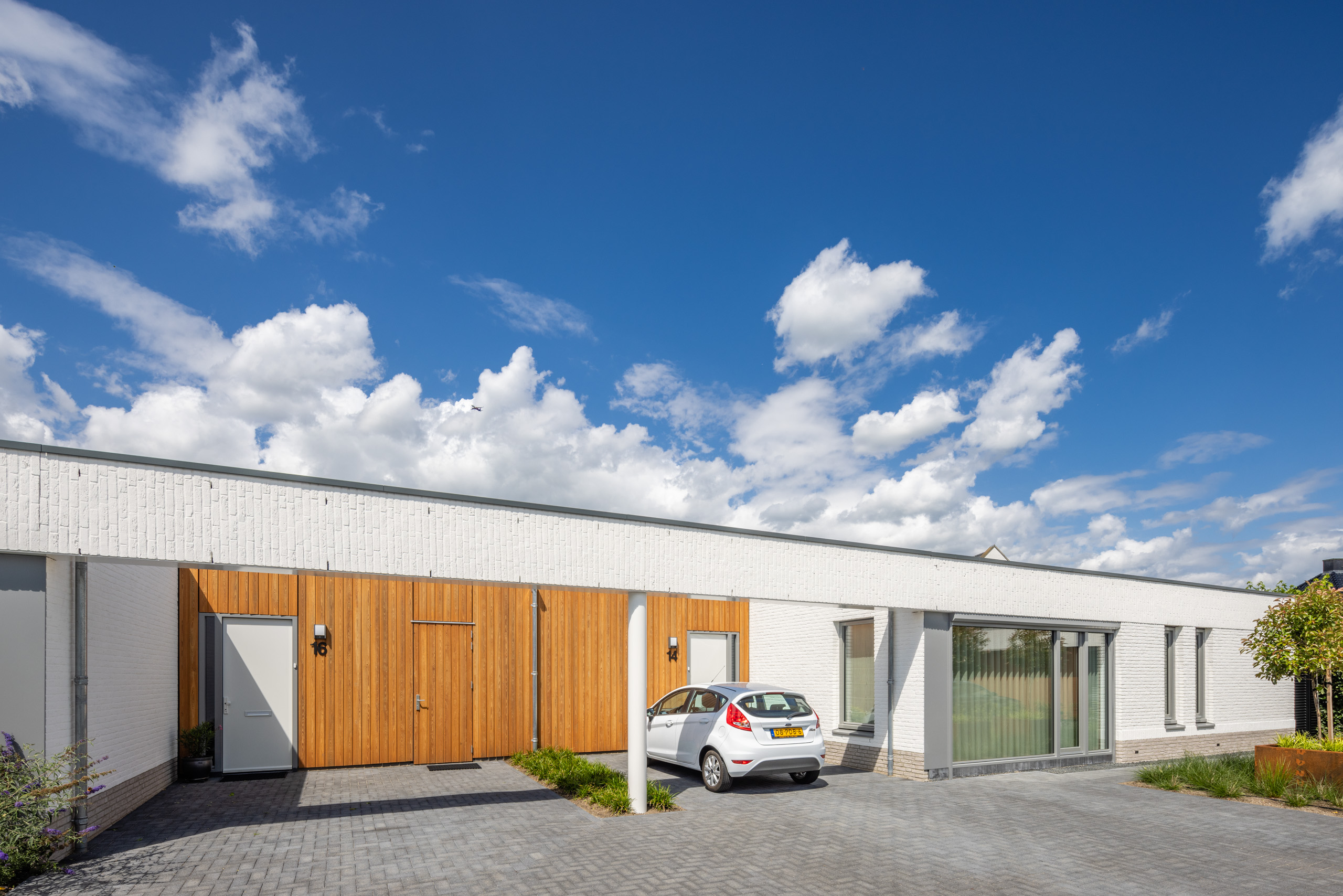 Deze modern vormgegeven patiowoningen zijn gelegen aan de rand van Son, nabij het natuurgebied het Dommeldal. De woningen hebben een heldere, frisse uitstraling. Met hun strakke, horizontaal georiënteerde vormgeving en door de toepassing van een lichte baksteen, onderscheiden deze woningen zich van de meer traditioneel vormgegeven eengezinswoningen in de rest van deze wijk.