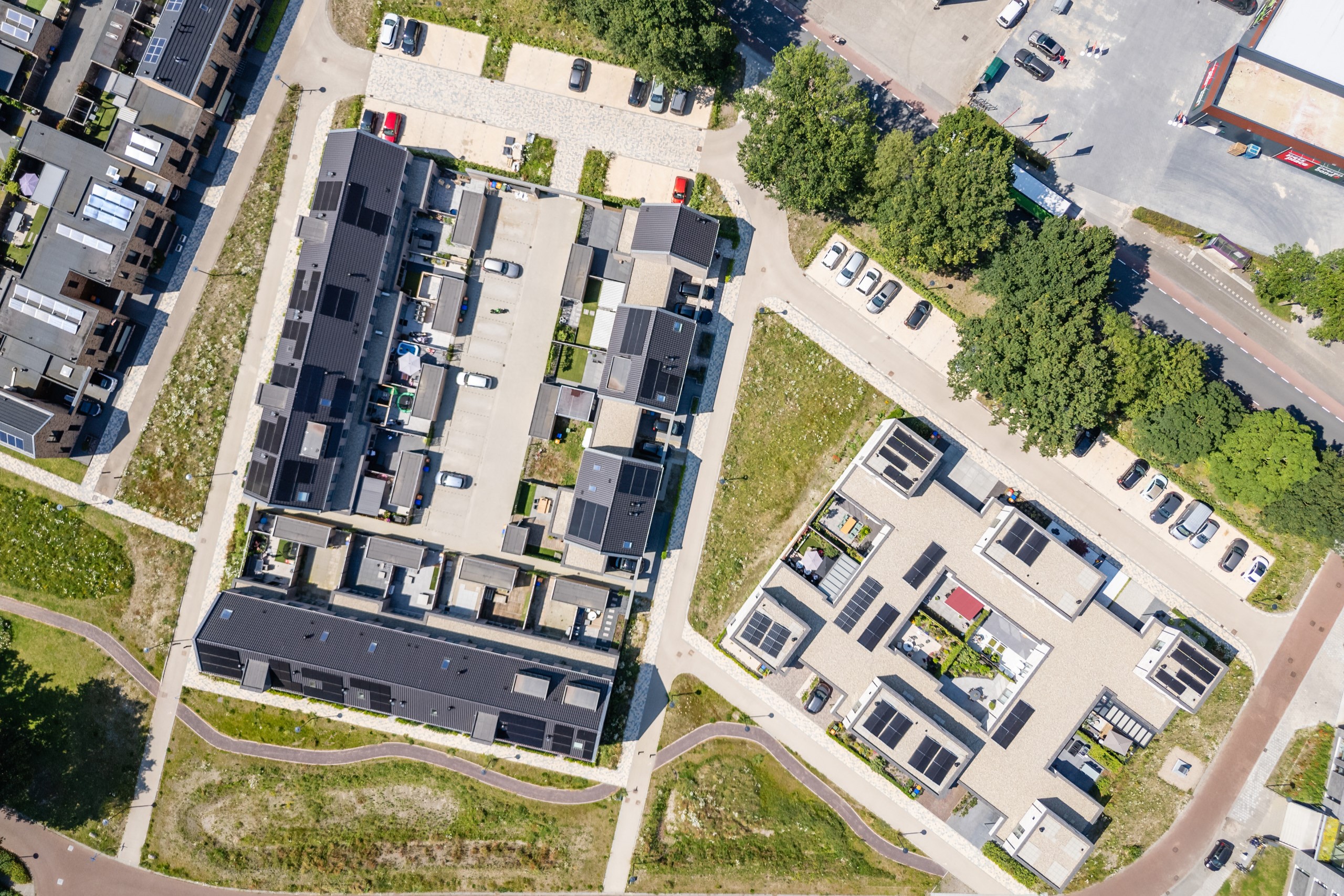 16 rijwoningen, 4 tweekappers, 1 vrijstaand geschakelde woning, 8 patiowoningen