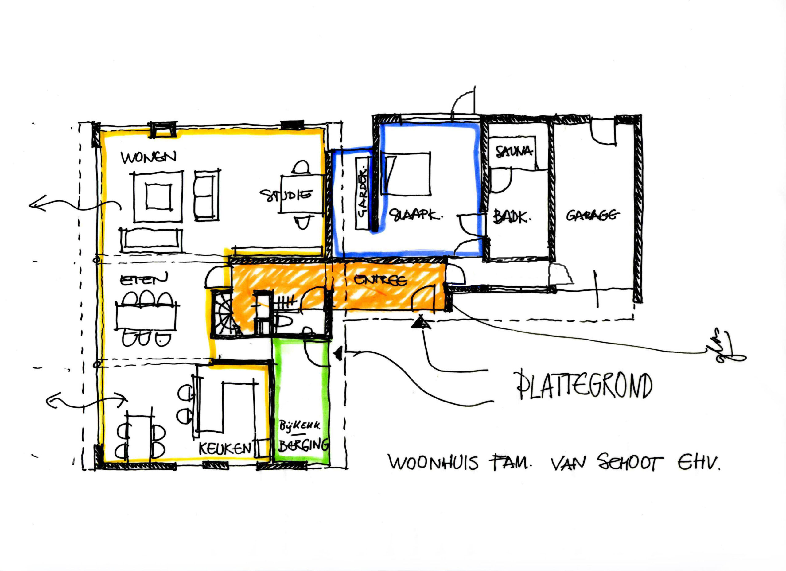 Het woonhuis te Eindhoven is gesitueerd in een villawijk en grenst direct aan het natuurgebied van het Dommeldal. Het oorspronkelijk ontwerp van het woonhuis was nauwelijks afgestemd op de kwaliteit van deze bijzondere locatie. Het plan voor de verbouwing van het huis bestaat enerzijds uit het vergroten van het woonprogramma ten behoeve van slapen op de begane grond en anderzijds het creëren van een betere relatie van de woonfuncties met het natuurgebied.
